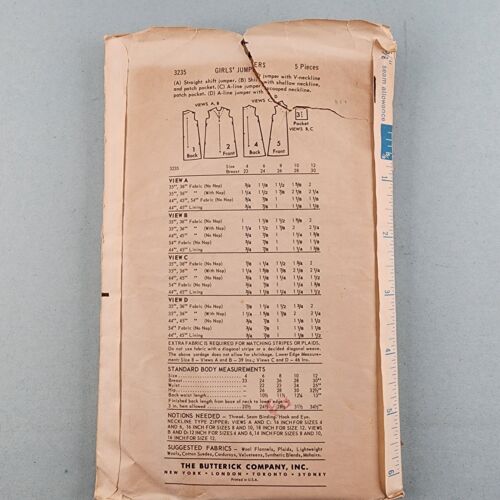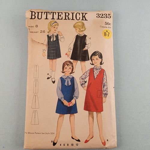 Butterick 3235 Vintage Sewing Pattern 1960s Girls Jumpers Size 8 Four Versions