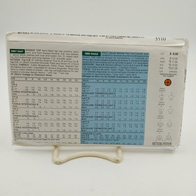 Butterick 3510 VTG 1994 Sewing Pattern Misses Tops Sz 18-22 Uncut Shaped Hem
