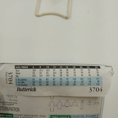 Butterick 3704 Vtg Sewing Pattern Uncut 1994 Miss Pajama Nightshirt Booties L-XL