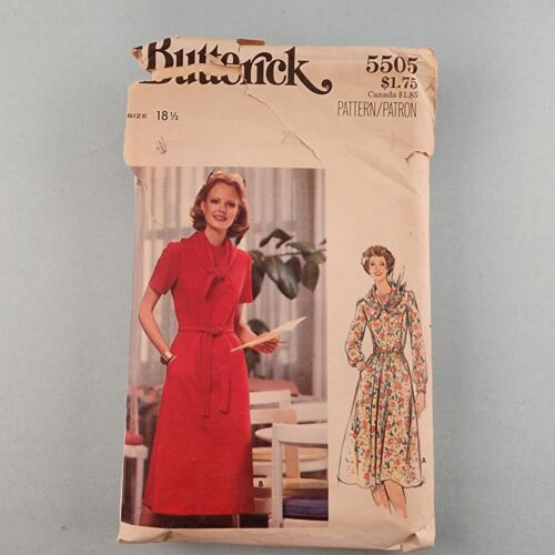 Butterick 5505 Vintage Sewing Pattern 70's Women's Half Size Dress Size 18½