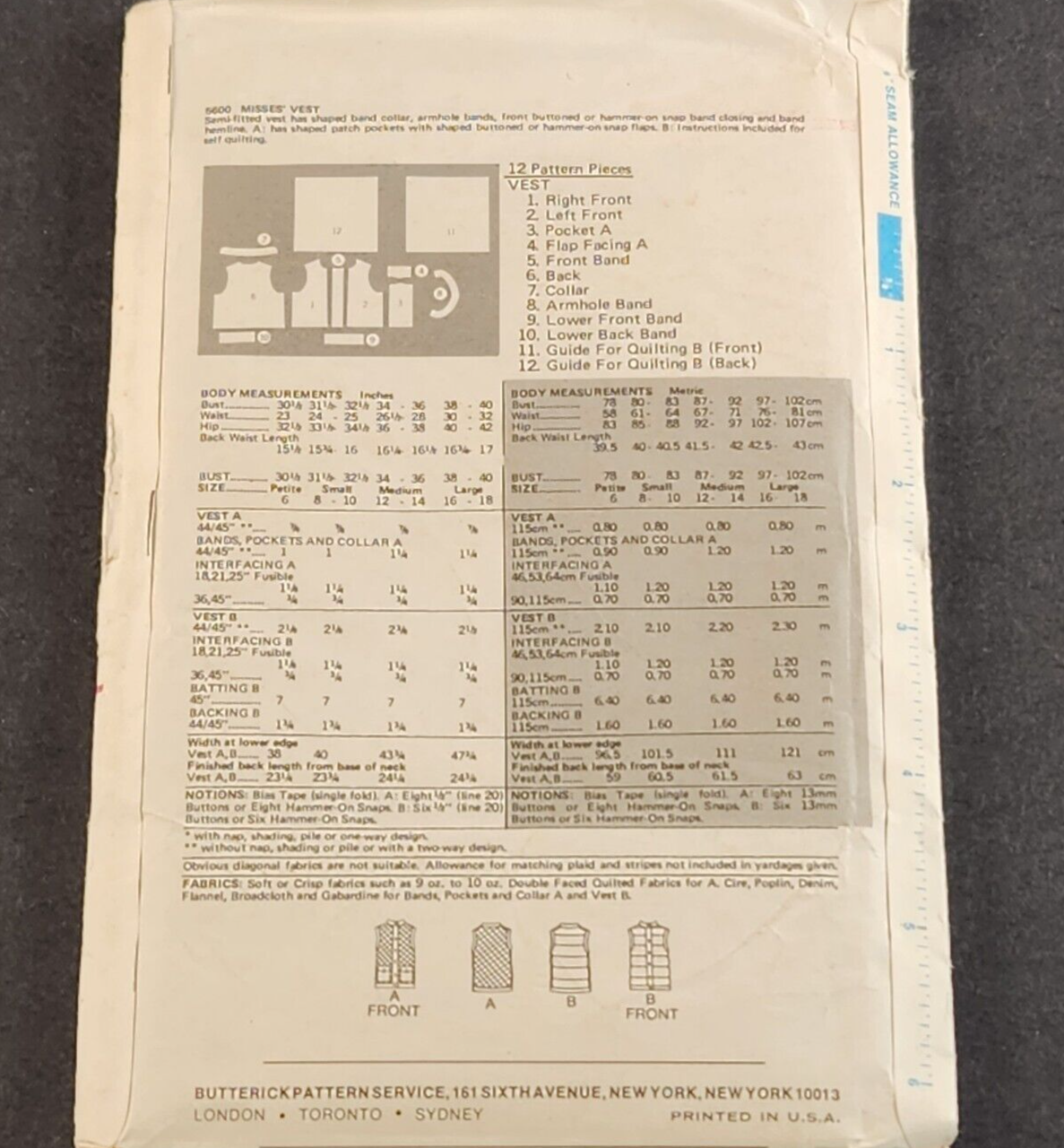 Butterick 5600 Vintage Sewing Pattern Misses Vest Size Medium