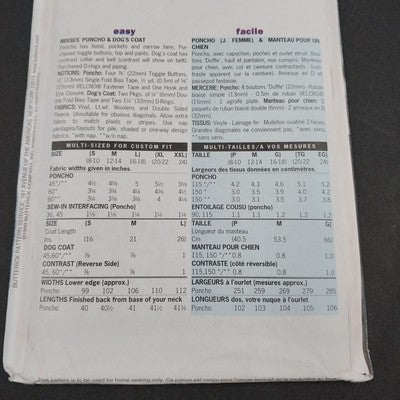 Butterick 6220 Vtg Sewing Pattern 1999 Uncut Misses Poncho Size S-M-L & Dog Coat
