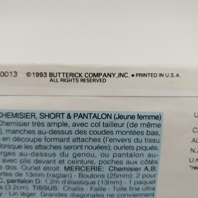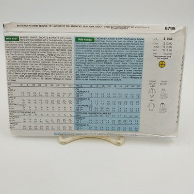 Butterick 6795 VTG 1993 Sewing Pattern Misses Shirt Shorts Pants Sz 18-22 Uncut