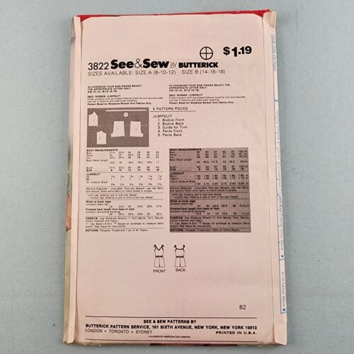 Butterick See & Sew 3822 Vintage Pattern 90's Misses Jumpsuit Size B 14-16-18