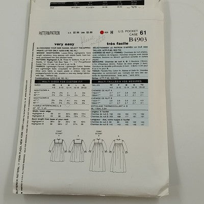 Butterick See & Sew B4903 Sewing Pattern 2006 Cut Misses Nightgown Sizes XS-M