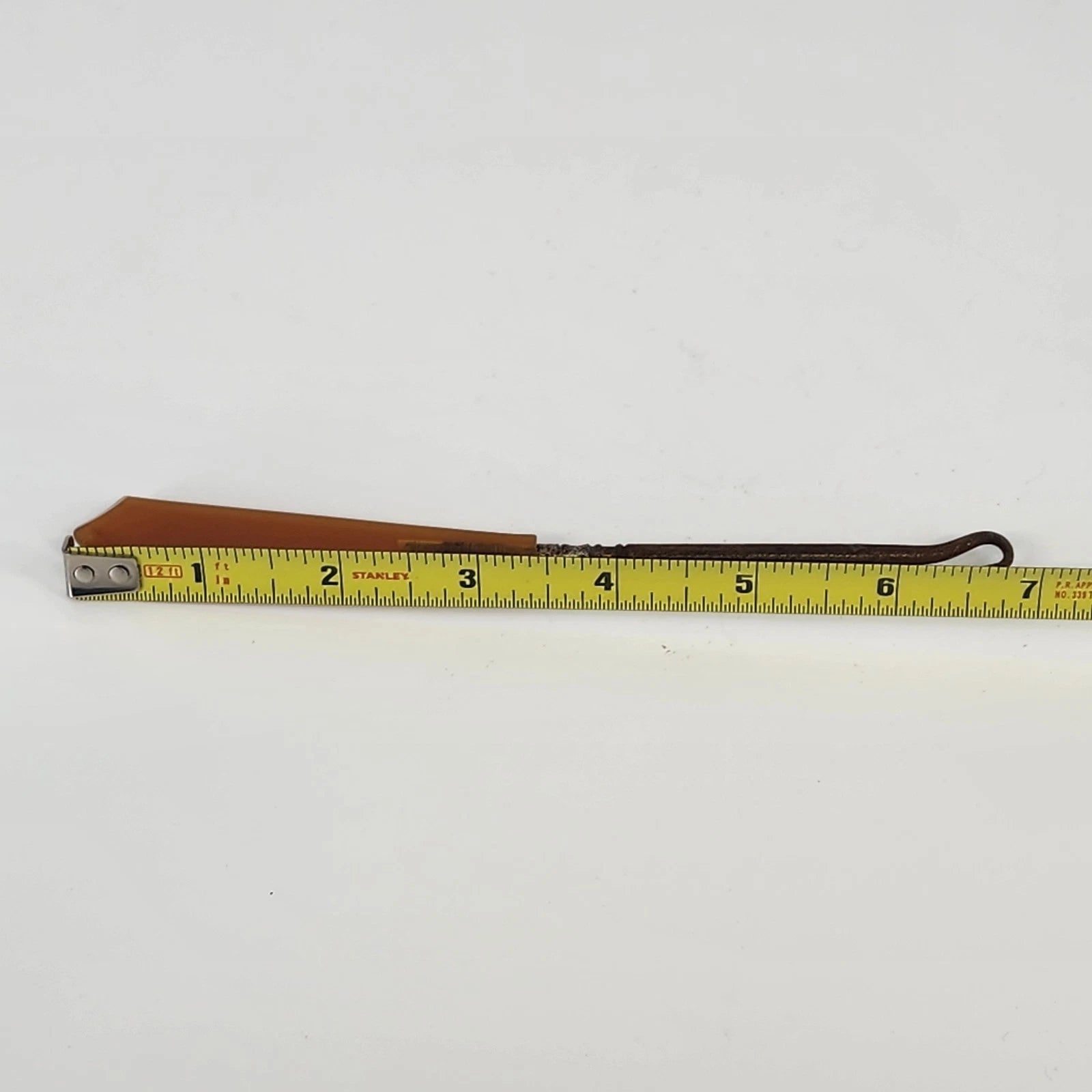Step back into the elegance of the Victorian and Edwardian eras with this beautiful 7-inch vintage button hook. This essential historical dressing tool features a classic cream-colored celluloid handle, designed for both comfort and style. Originally used to fasten the tiny, stiff buttons on high-top leather boots and formal gloves, it now serves as a wonderful collectible or a unique display piece for a vanity or sewing room. The polished steel hook remains sturdy and functional, making it a perfect gift for historians, antique tool collectors, or anyone who appreciates the craftsmanship of a bygone era.