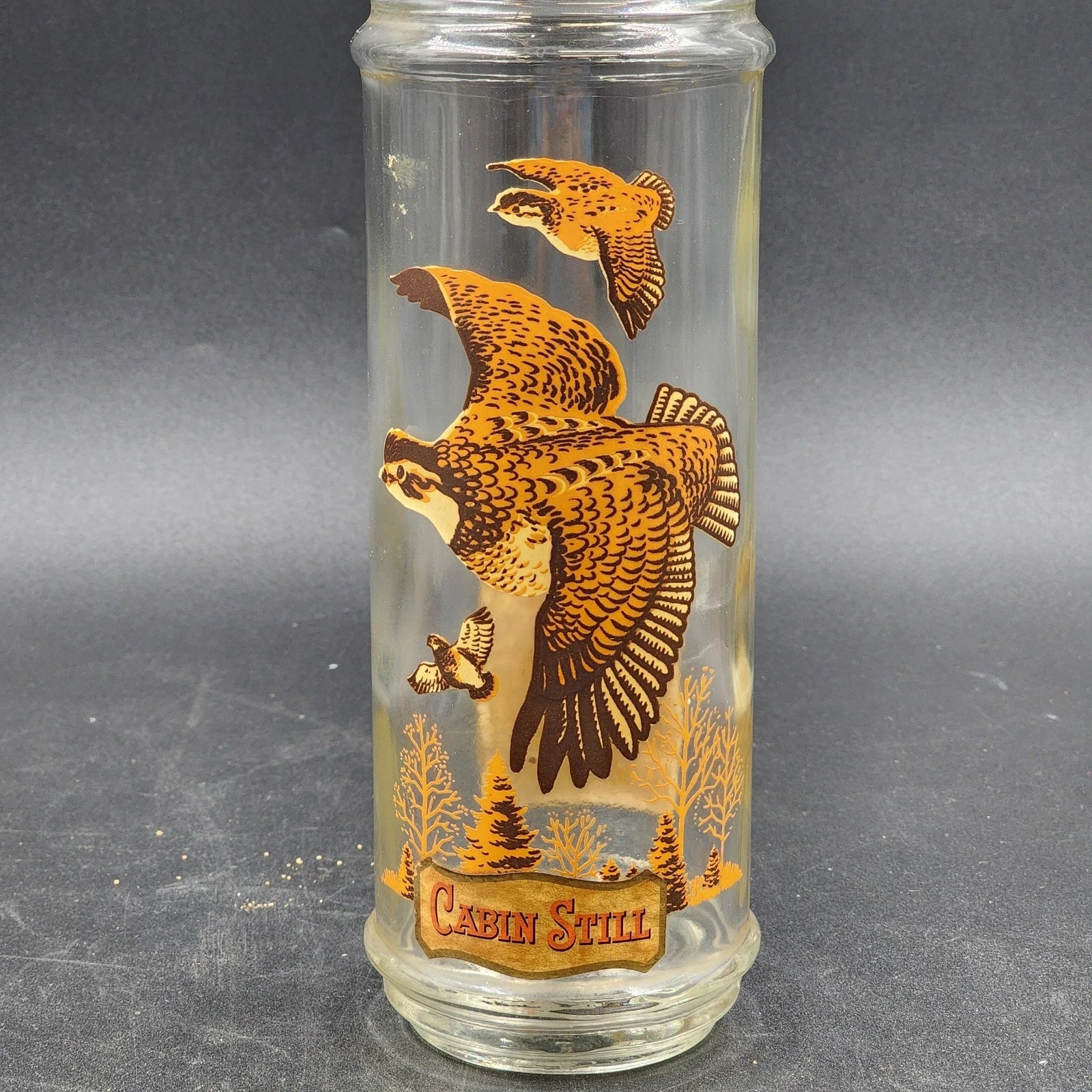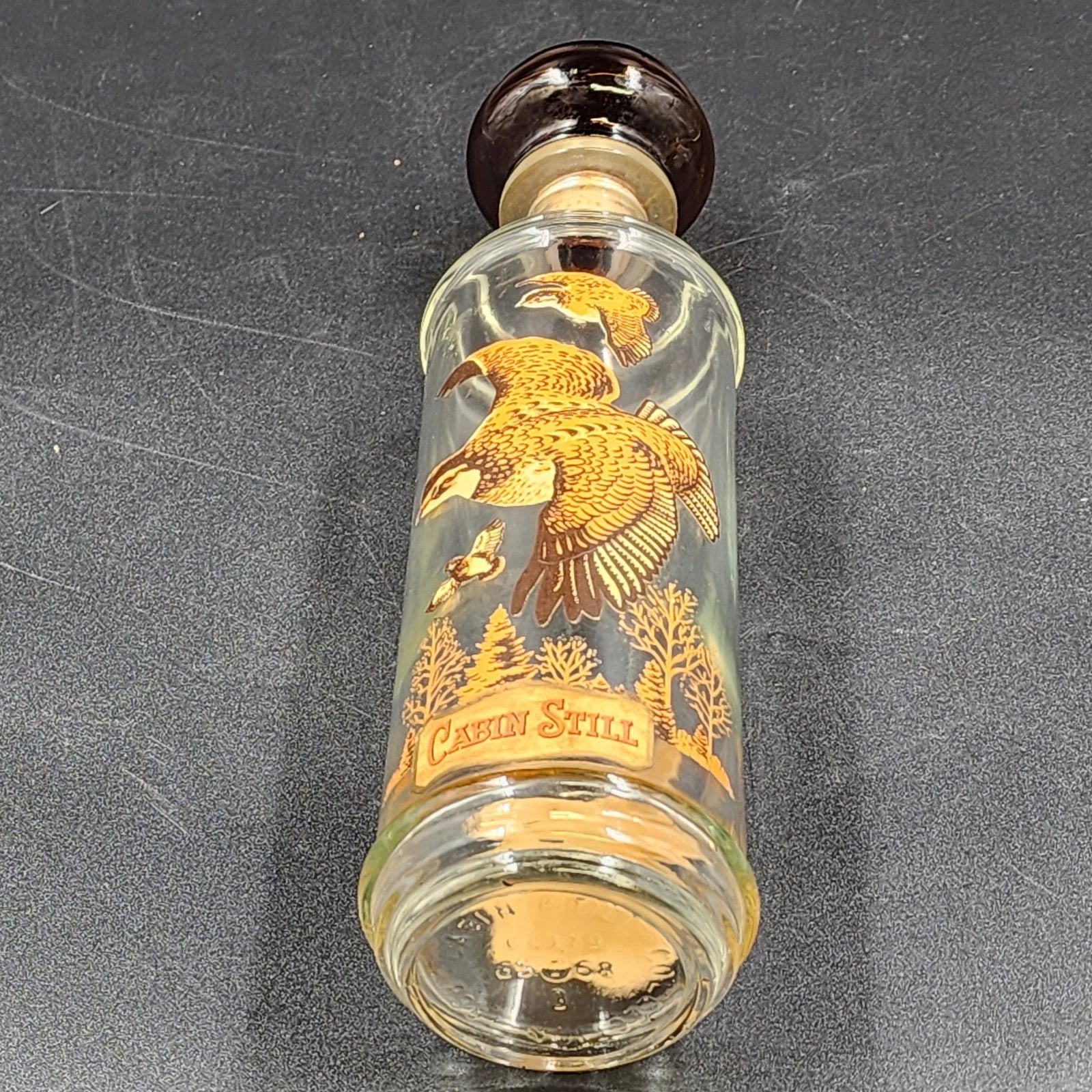 Beautiful vintage 1968 Cabin Still Sportsman Collection whiskey decanter, titled "Covey of Quail." This collectible decanter features a detailed design of quail in natural tones and includes a cork top.