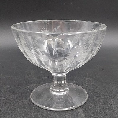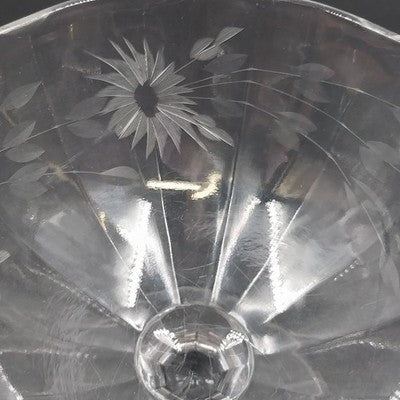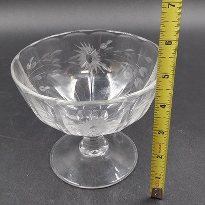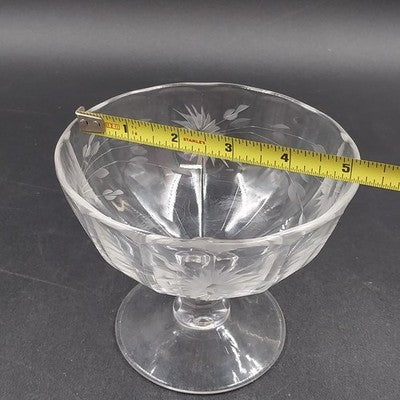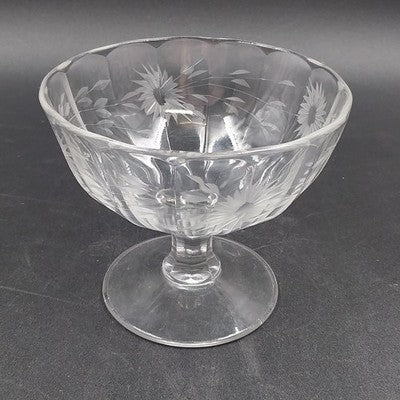 Candy Dish Etched Cut Compote Sunburst Floral Clear Glass Footed 5.25"x4.5"