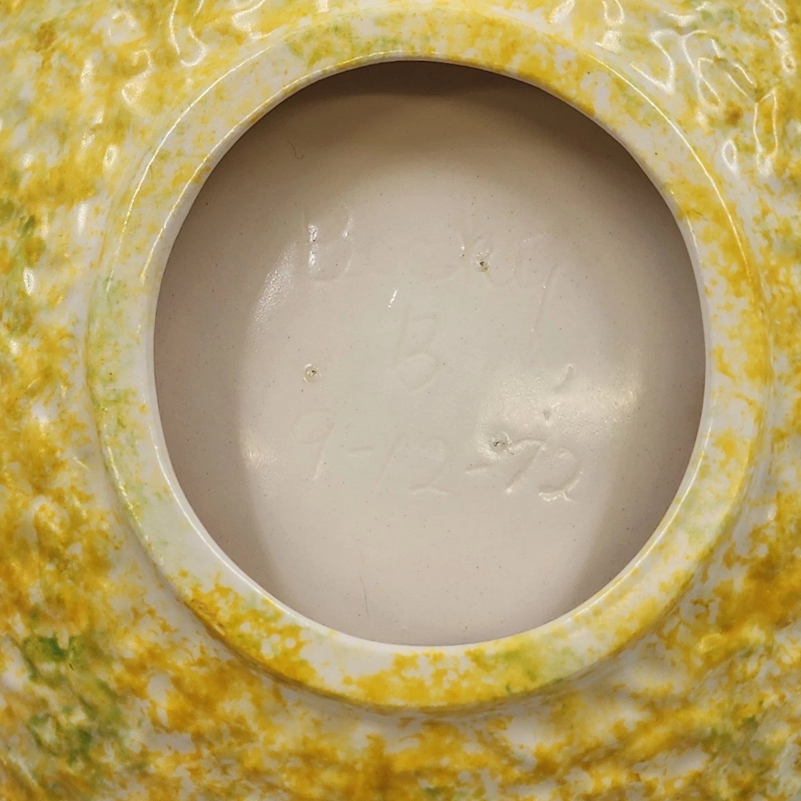 Add a pop of retro charm to your kitchen or collection with this vintage cantaloupe-style ceramic bowl, signed Becky B 1972. Crafted with attention to detail, this hand-glazed bowl beautifully captures the look of a real cantaloupe, featuring a textured orange exterior and a smooth interior finish. Perfect as a decorative piece, serving bowl, or collectible pottery.