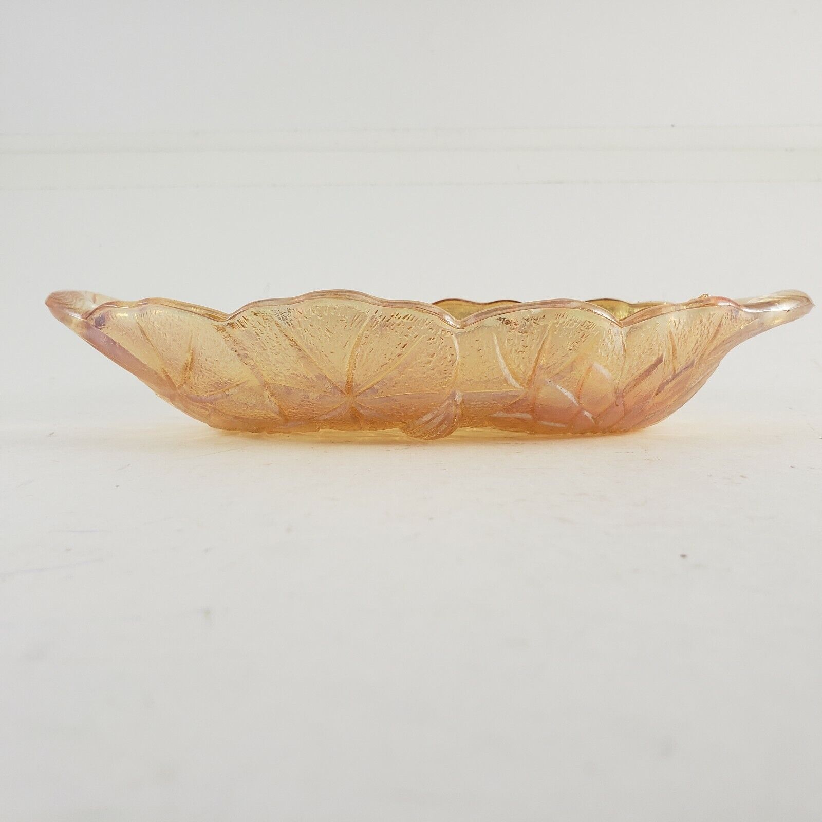 Carnival Glass Relish Dish Oval Flower Daisy Marigold Iridescent Gold 9½" × 4¾"