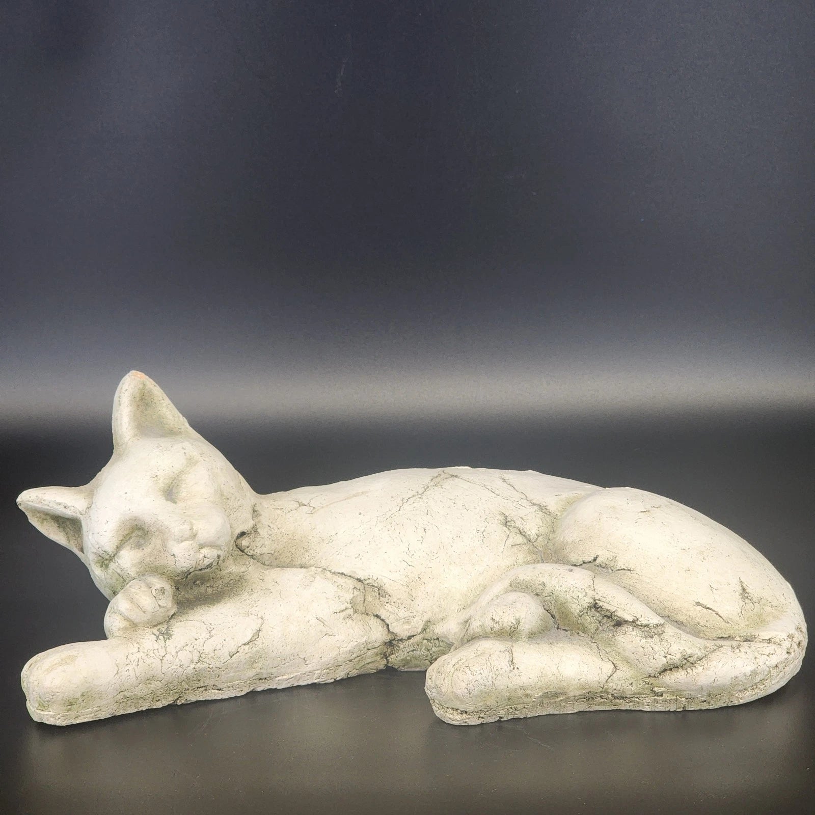 Bring a sense of peaceful companionship to your doorstep or flower bed with this vintage "Curled Cat" garden statue by Gate Designs. Masterfully crafted from heavy cast stone (concrete), this large-scale feline is depicted in a realistic sleeping pose, tucked into a cozy ball. The statue features a wonderful weathered texture and a substantial weight that ensures it stays put in the garden, even in windy conditions. Whether nestled under a hosta leaf or guarding your front gate, this durable cat sculpture is a timeless accent for any pet lover's outdoor sanctuary.