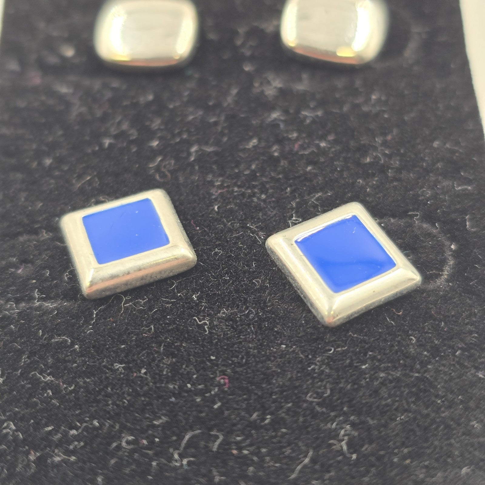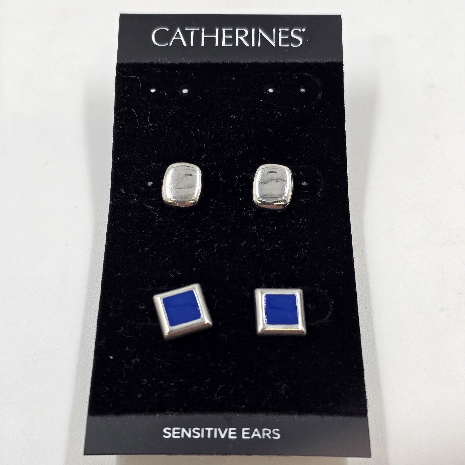 Catherines 2 Pair Silver Tone Clear & Solid Blue Small Earrings Sensitive Ears