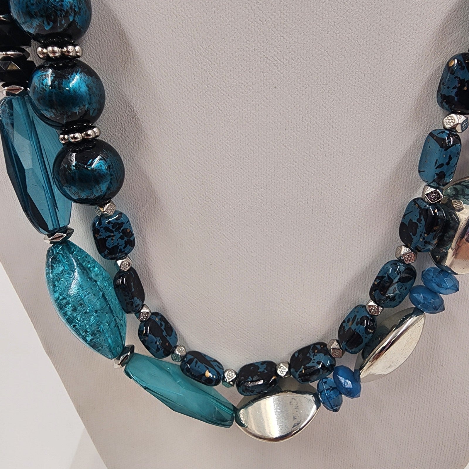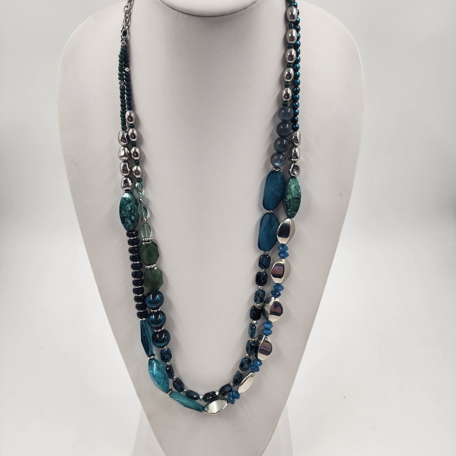 Catherines Double Strand Silver Tone Blue Black Green Faux Pearl Beads Necklace