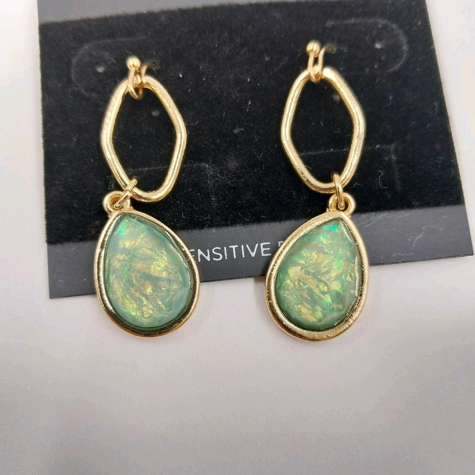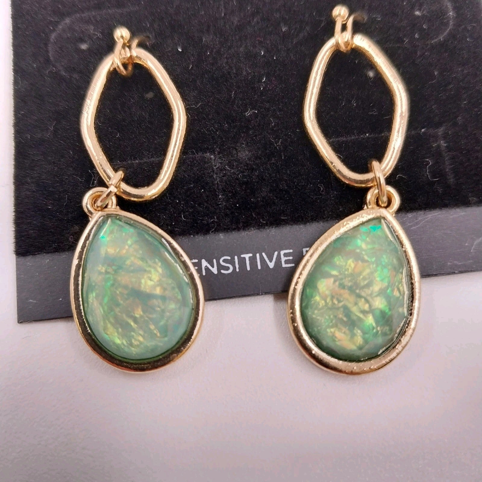 * Design: Bezel-set Ethiopian opal-colored stones with a sleek drop style
