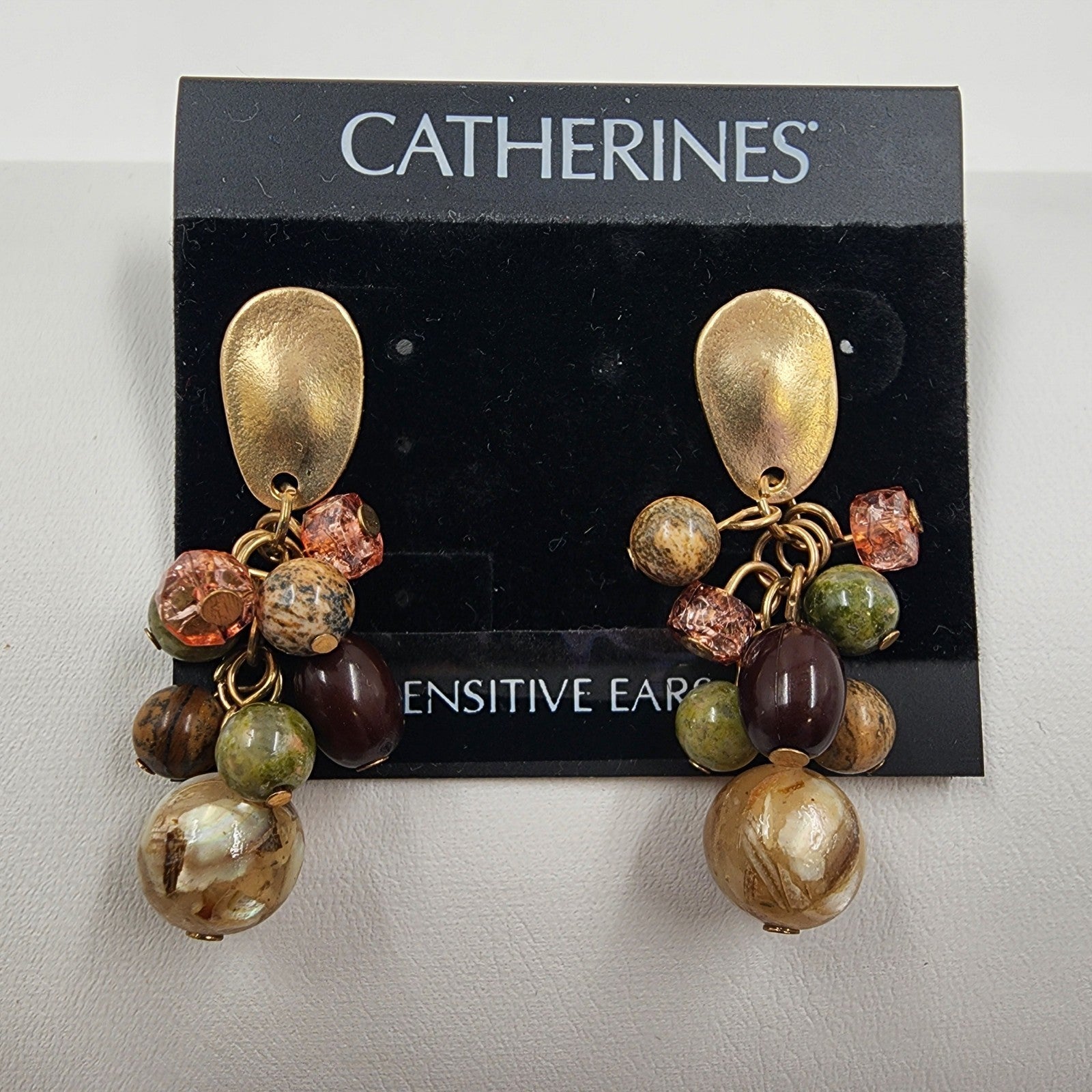 Catherines Gold Tone Multicolor Faux Pearl Beads Dangle Earrings for Pierced Ear