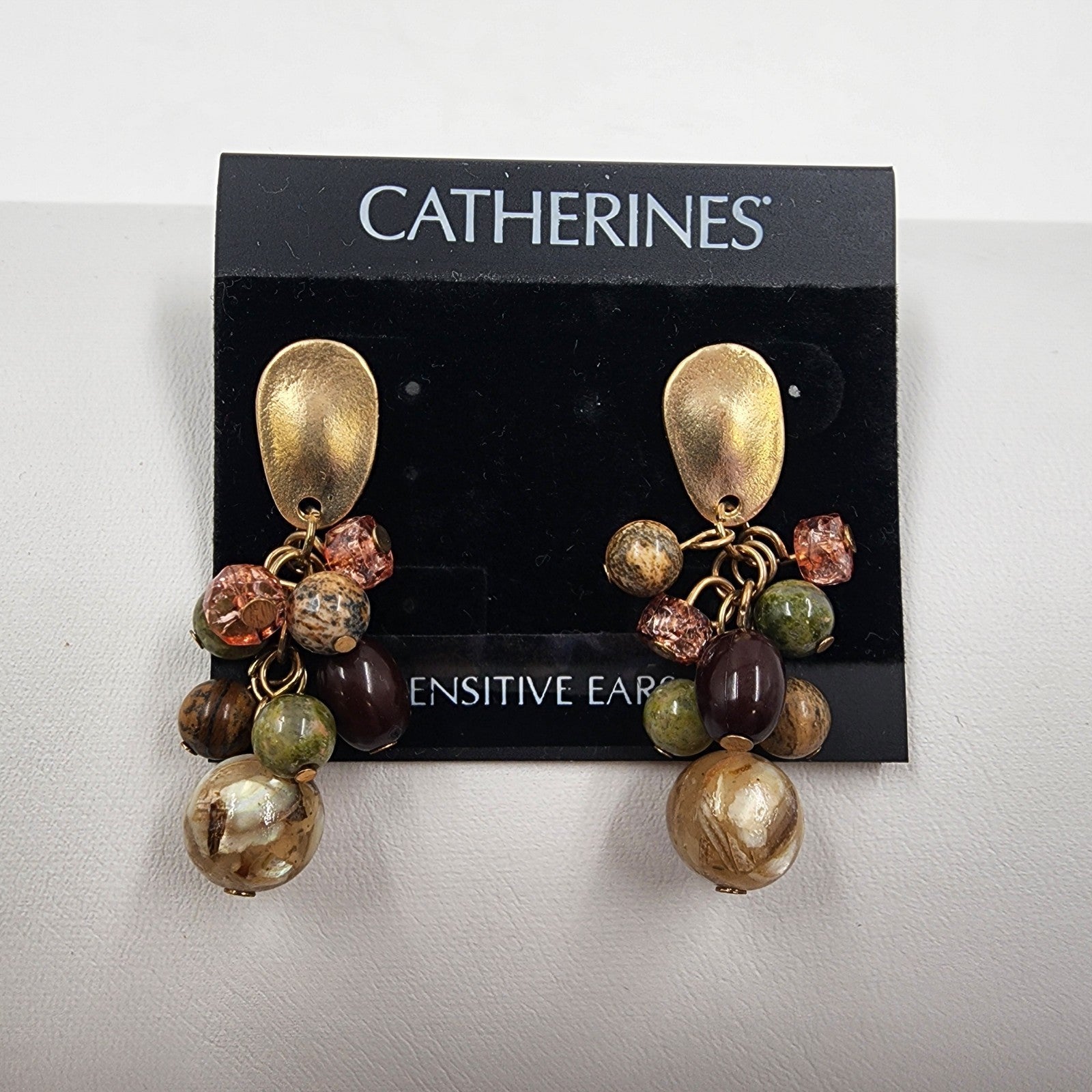 Elevate your style with these vintage Catherines gold-tone dangle earrings, featuring a vibrant array of multicolor faux pearl beads that create an elegant drop design.