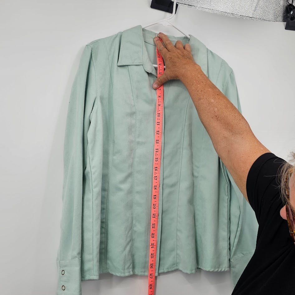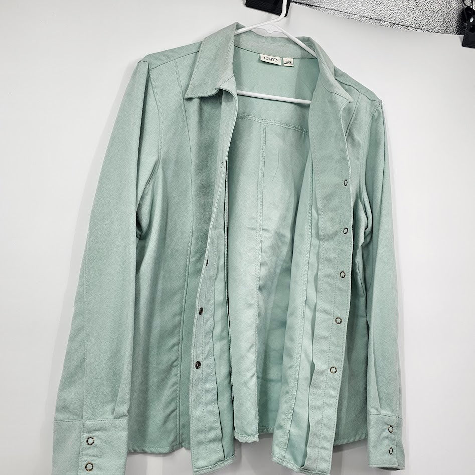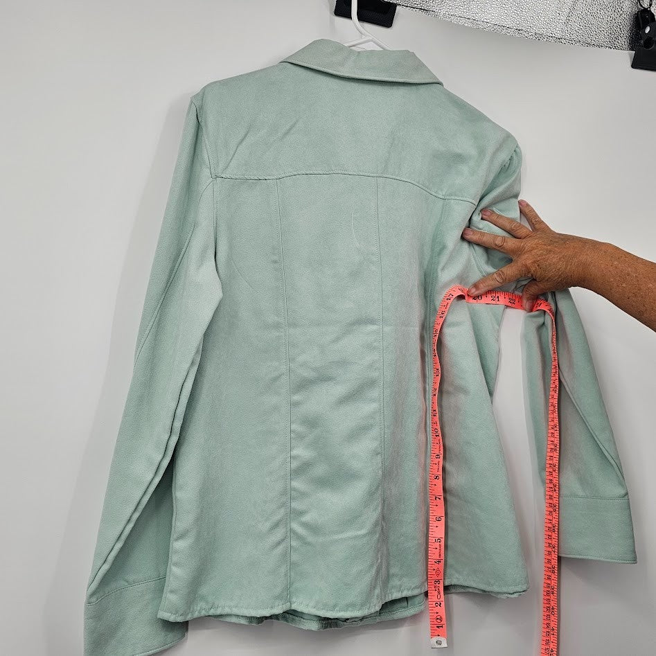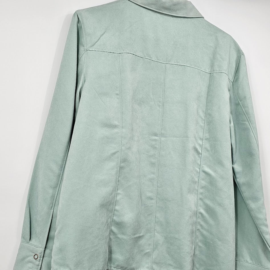 Y2K Cato Fashion Faux Suede Jacket Women’s L Seafoam Green Button Up Retro Blazer