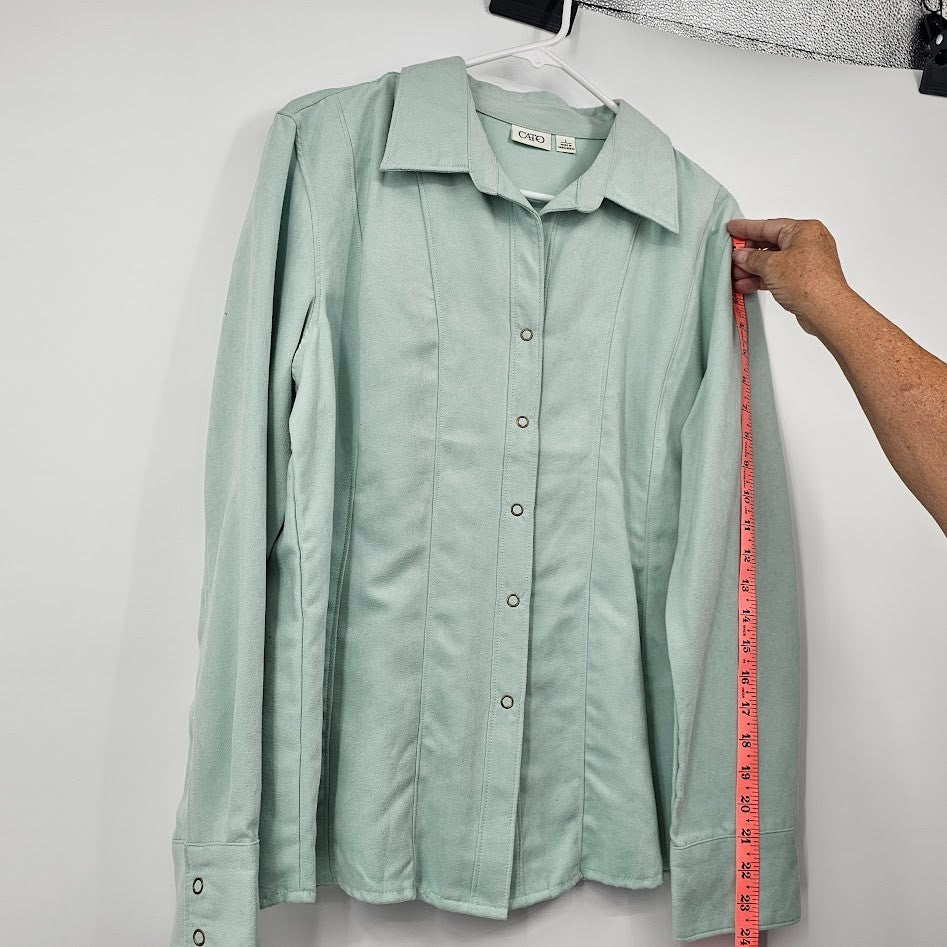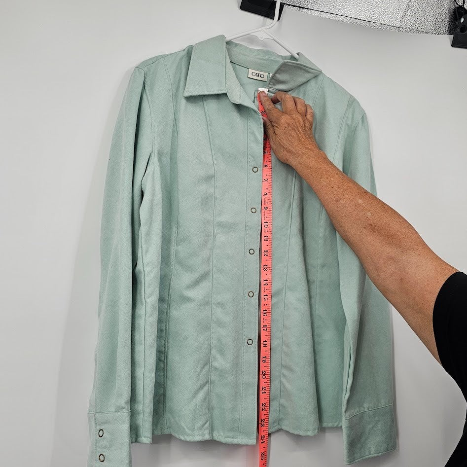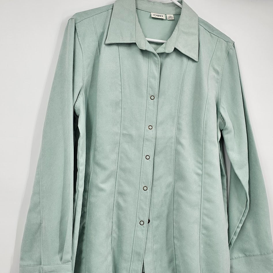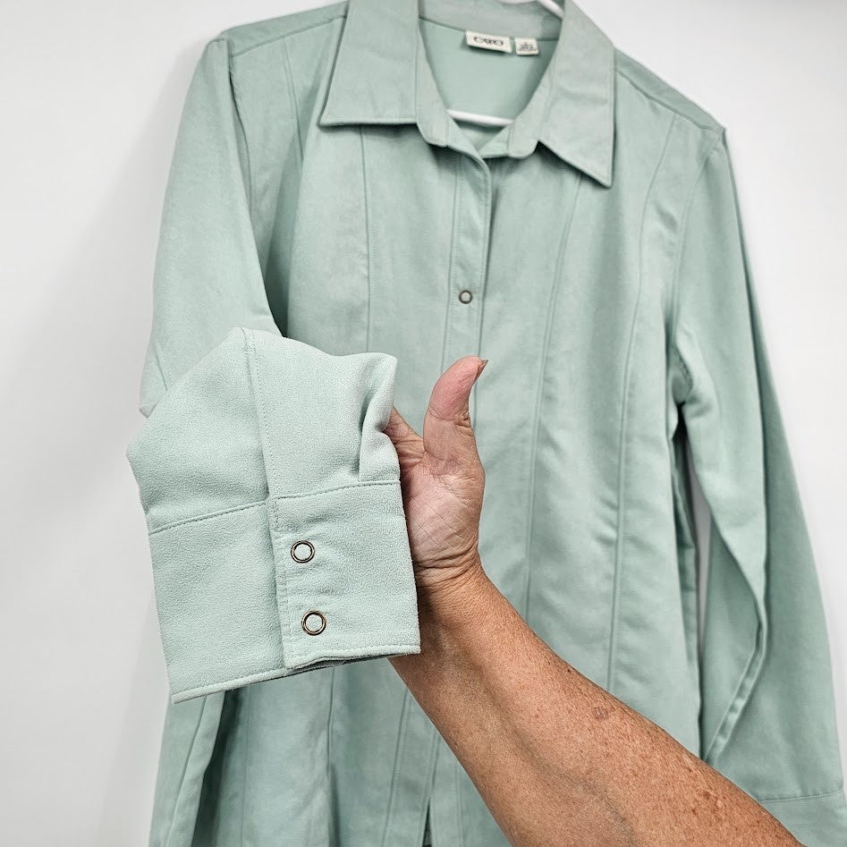 Y2K Cato Fashion Faux Suede Jacket Women’s L Seafoam Green Button Up Retro Blazer