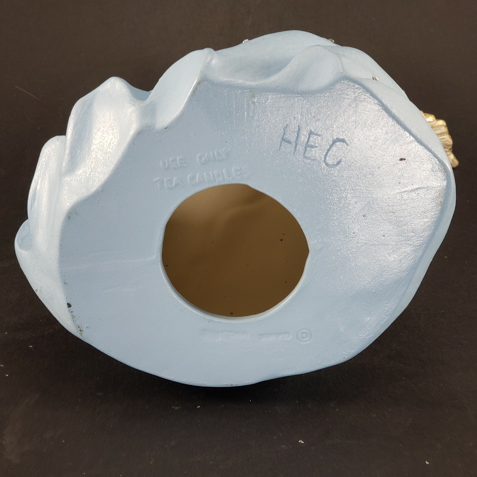 Material/Style: Ceramic, appears to be a homemade piece, initialed HEC on the bottom