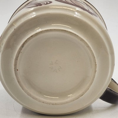 Ceramic Stoneware Cream & Brown w Stylized Vegetable Design Soup Mug Japan 16oz