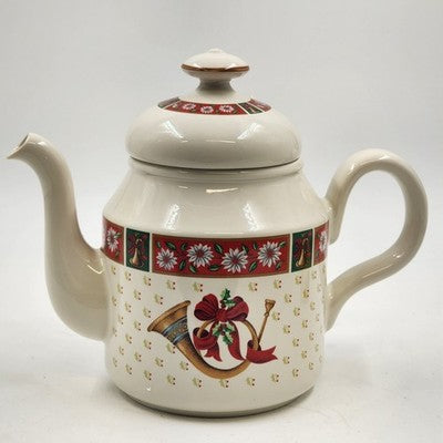 Charlton Hall Classic Traditions Christmas Teapot Ceramic 50 oz Holiday Design