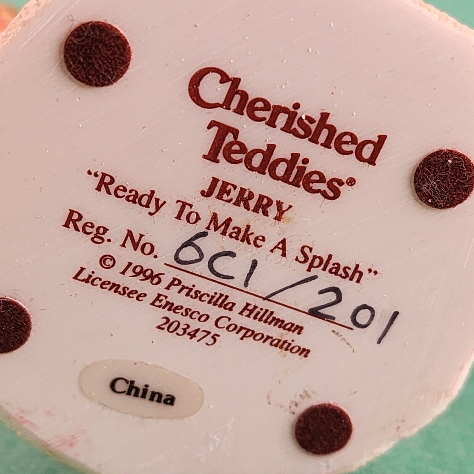 Add a heartwarming touch to your collection with this Cherished Teddies "Jerry" figurine, crafted by Enesco Corp in 1996. This adorable porcelain piece captures the timeless charm of the cherished series and makes a perfect gift for collectors or teddy bear enthusiasts.