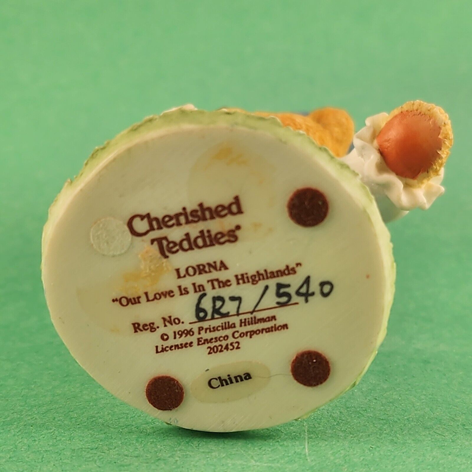 Add a touch of charm to your collection with the Cherished Teddies "Lorna" porcelain figurine by Enesco Corp. Released in 1996, this delightful collectible showcases exquisite hand-painted details and timeless craftsmanship. Perfect for collectors or as a heartwarming gift.