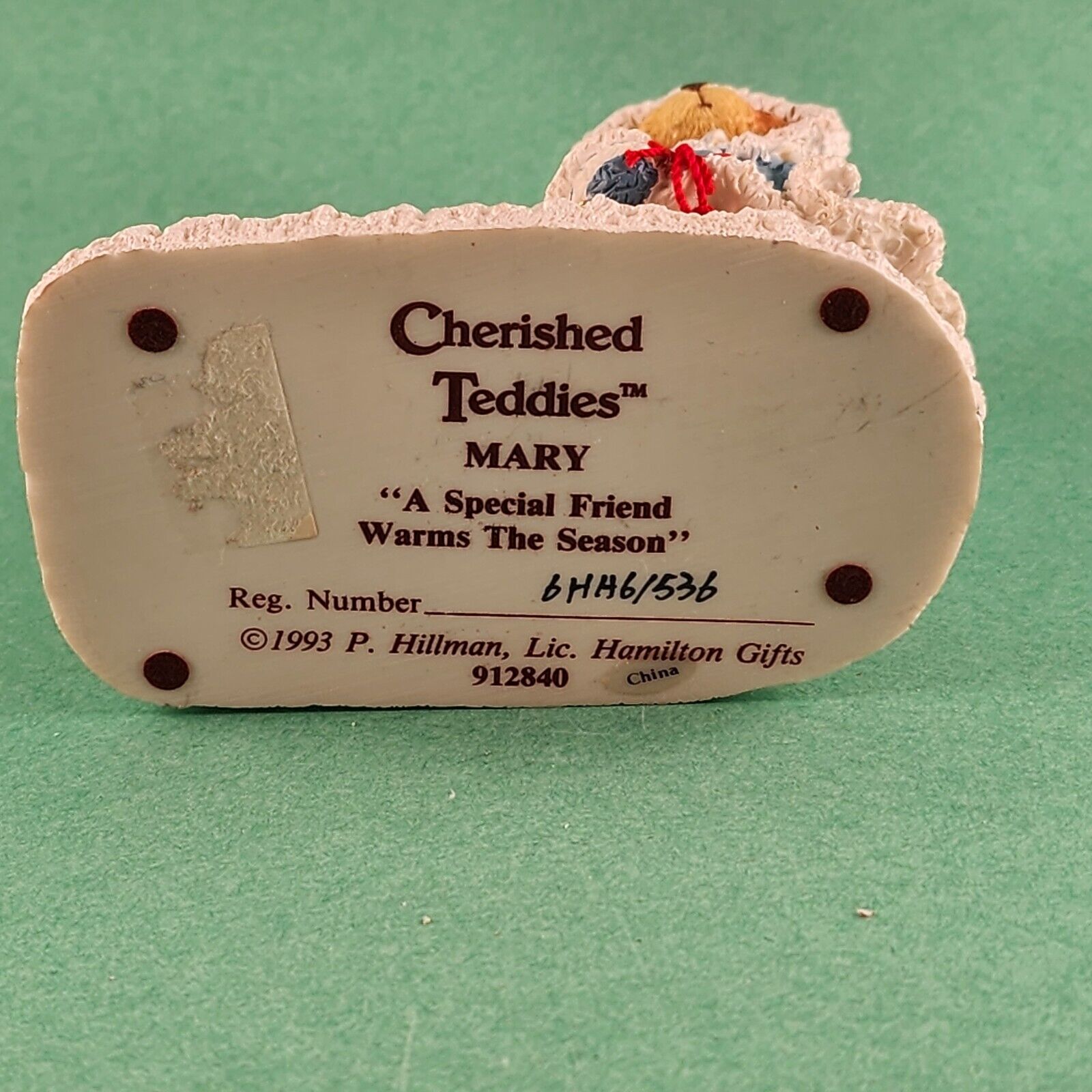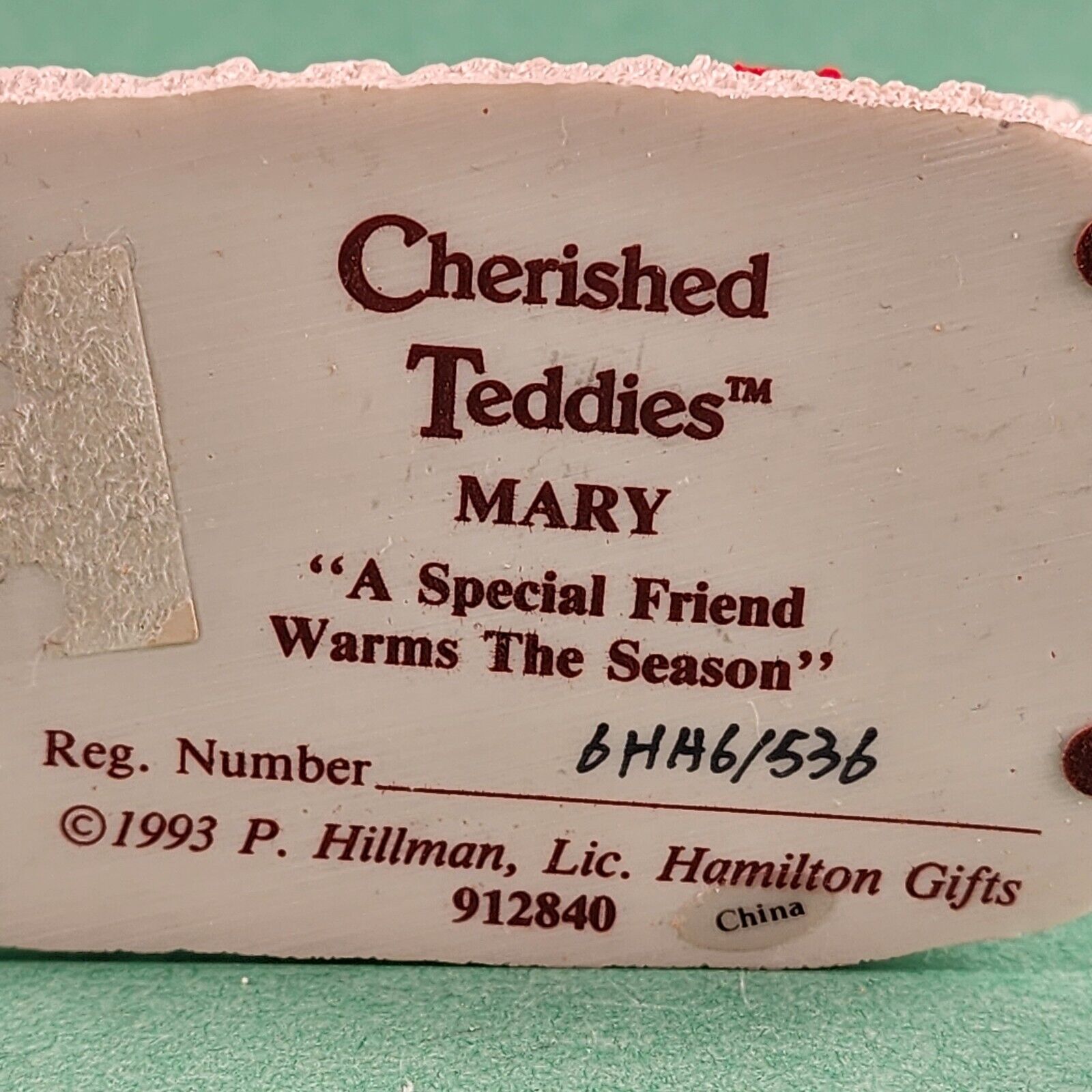 Delight in the charm of Cherished Teddies "Mary" porcelain figurine by Enesco Corp. This heartwarming collectible features Mary in an adorable pose, embodying the classic appeal of the Cherished Teddies collection. A perfect gift or addition for any enthusiast.