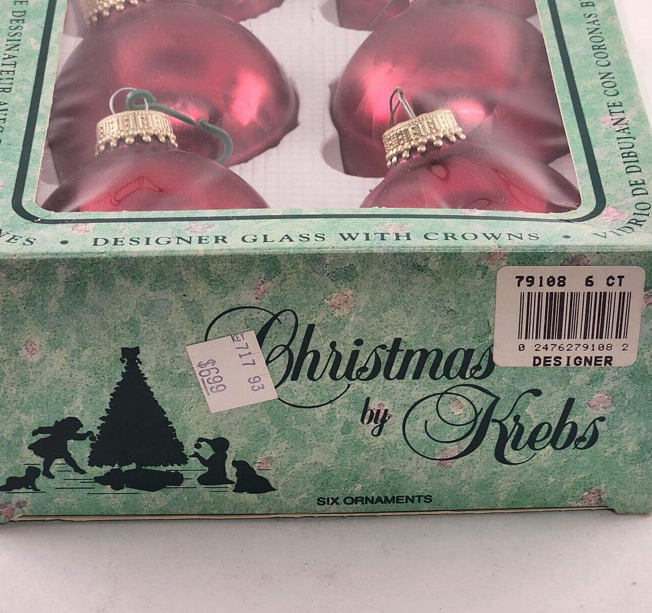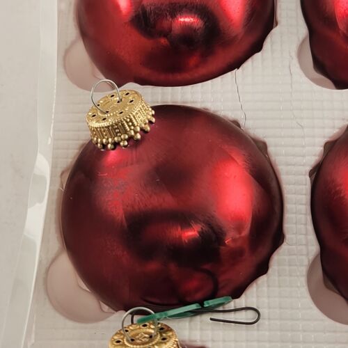 Christmas By Krebs Glass Ornaments 6 pack Red Crimson Jewel Vintage Crown Top