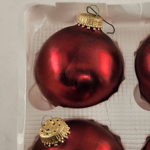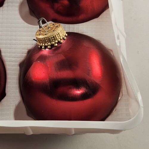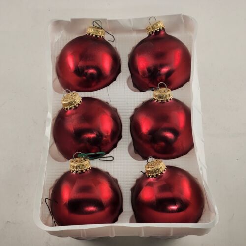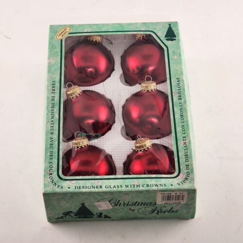 Christmas By Krebs Glass Ornaments 6 pk Red Crimson Jewel Vintage Crown Top 2.5"