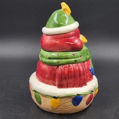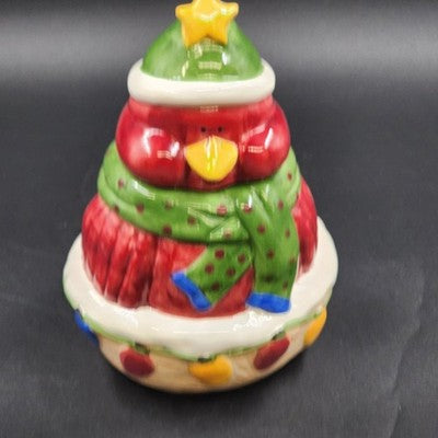 Christmas Cookie Jar Burgundy Bird with Hat & Scarf Holiday Decor 10.75" Tall