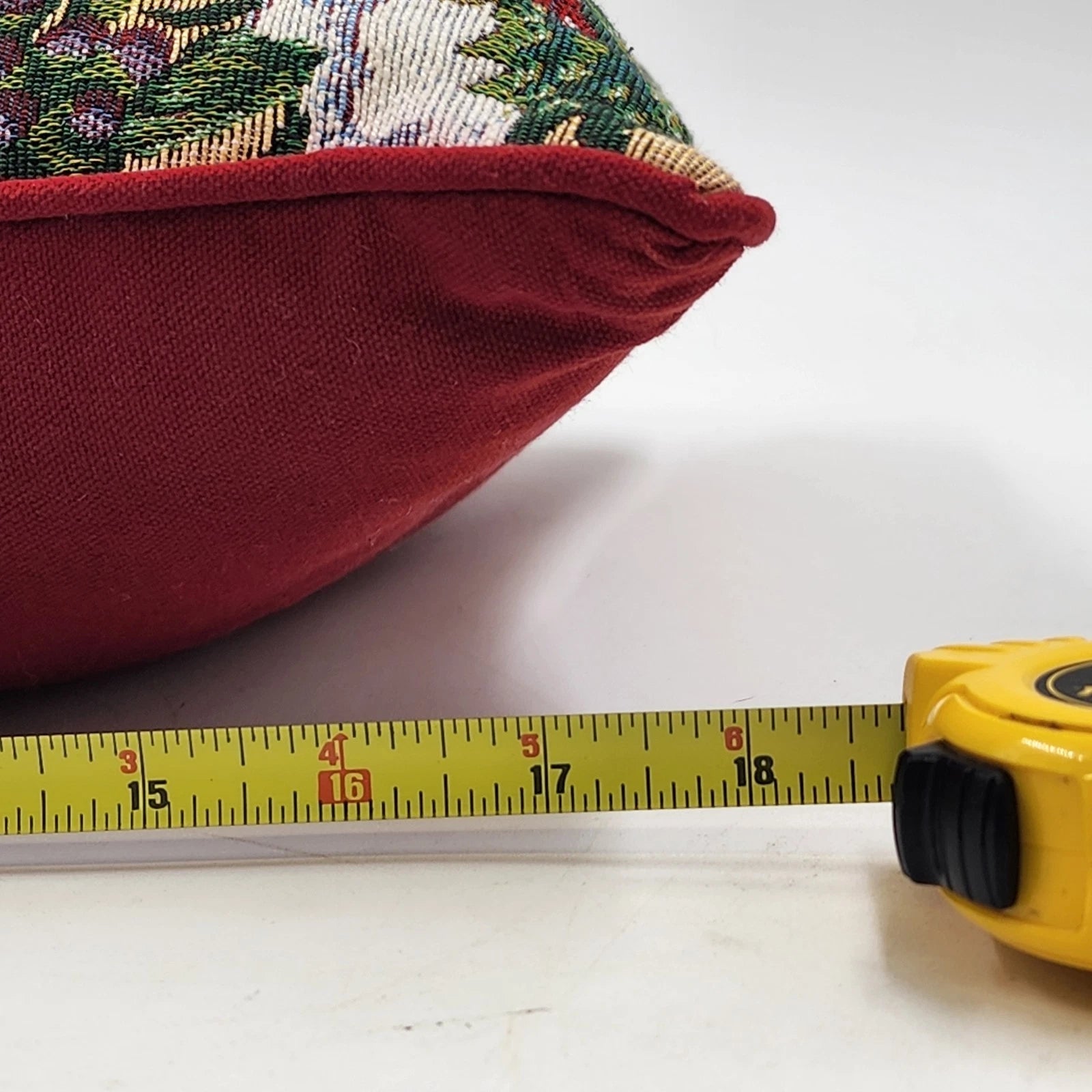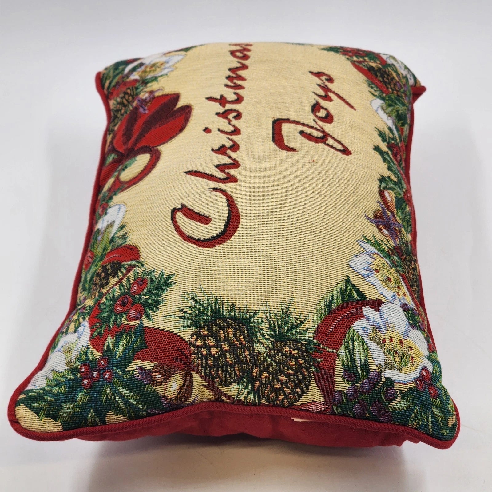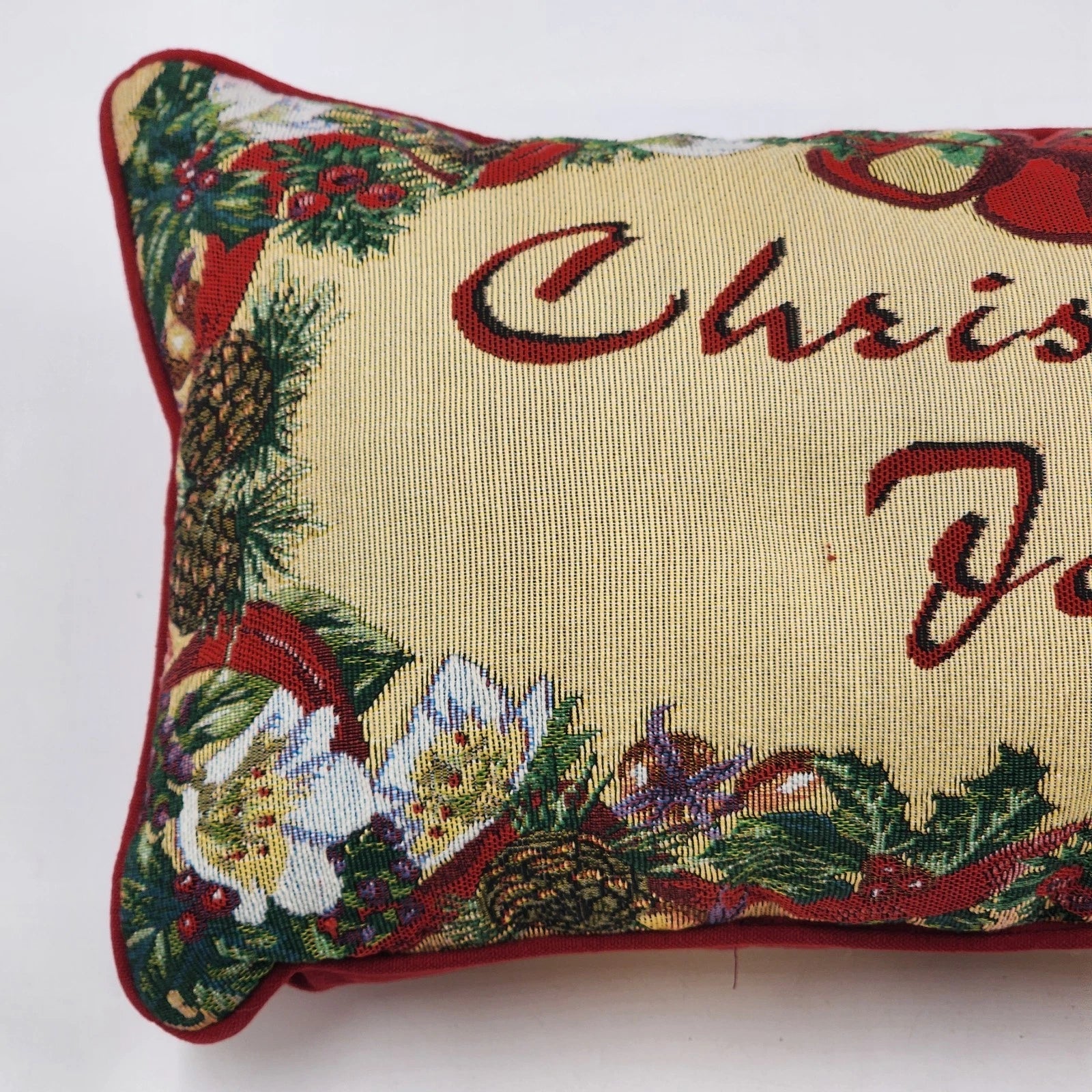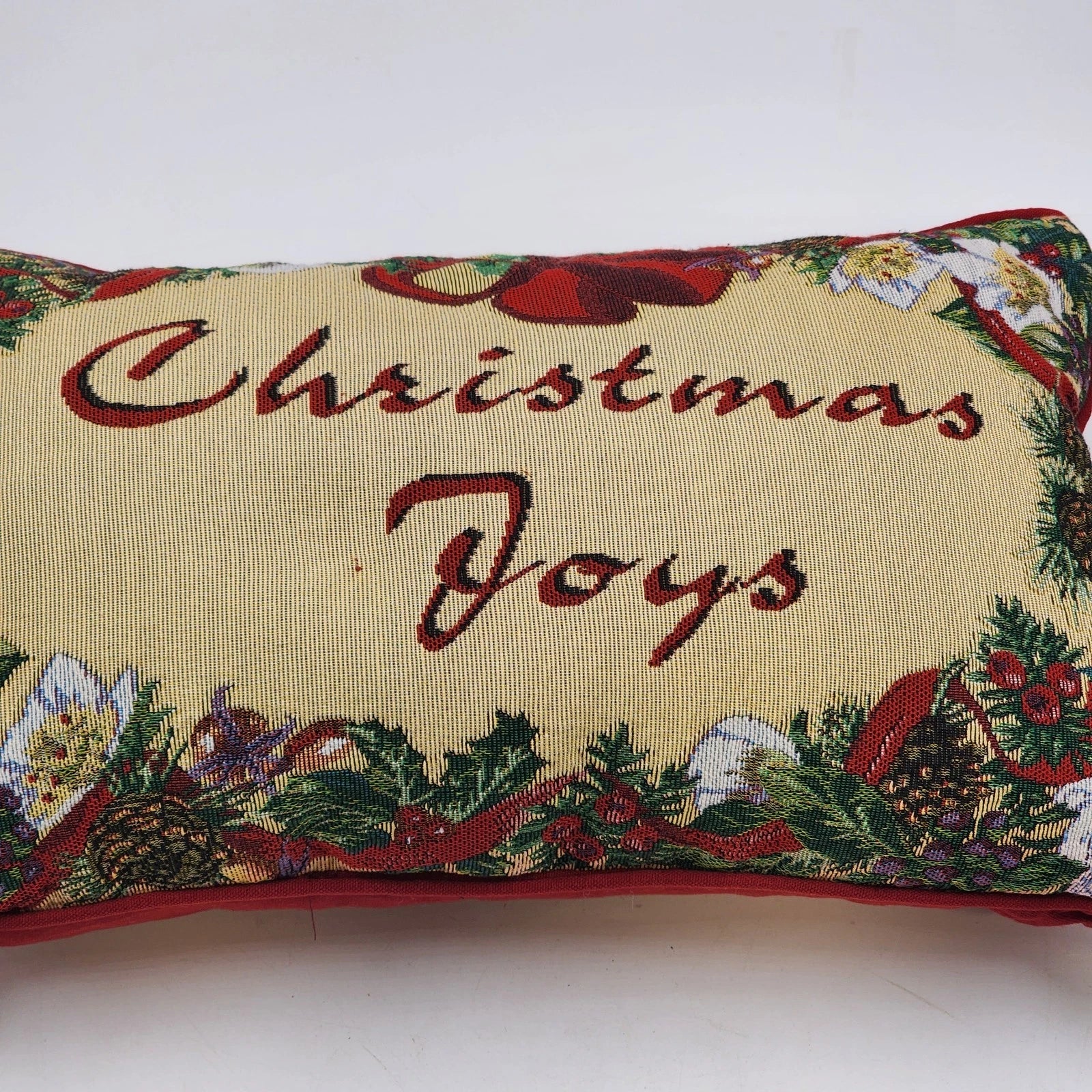 Christmas Joys Throw Pillow Red Back Holly Berries Holiday Decor 18" x 11"