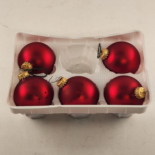 Christmas Ornament Glass Krebs Red jewel tone 5 Pk Vintage Boxed Gold Crown 2.5"