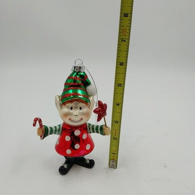 Christmas Pixie Elf Glass Ornament by Living Quarters 5.5" x 4" Holiday Decor