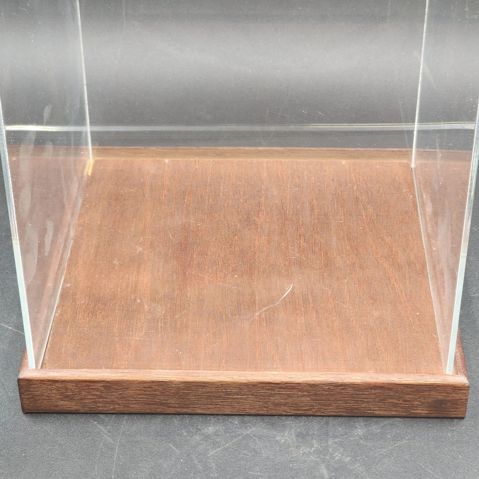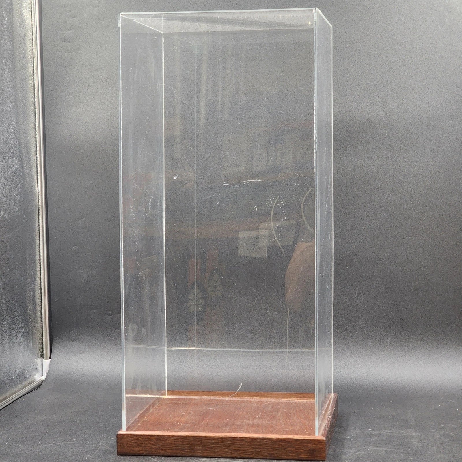 Clear Acrylic Display Case 10x10x23" Display Box with Wood Base Collectible USED