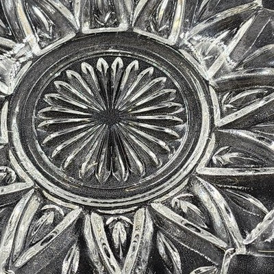 Add a touch of vintage charm to your table with this 1960s Federal Glass bread and butter plate, featuring a beautiful pressed flower petal design. A lovely addition to any glassware collection or retro tablescape.