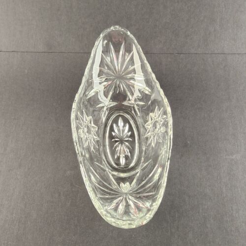 Clear Glass Starburst Design Oblong Candy Nut Dish by Anchor Hocking Vintage