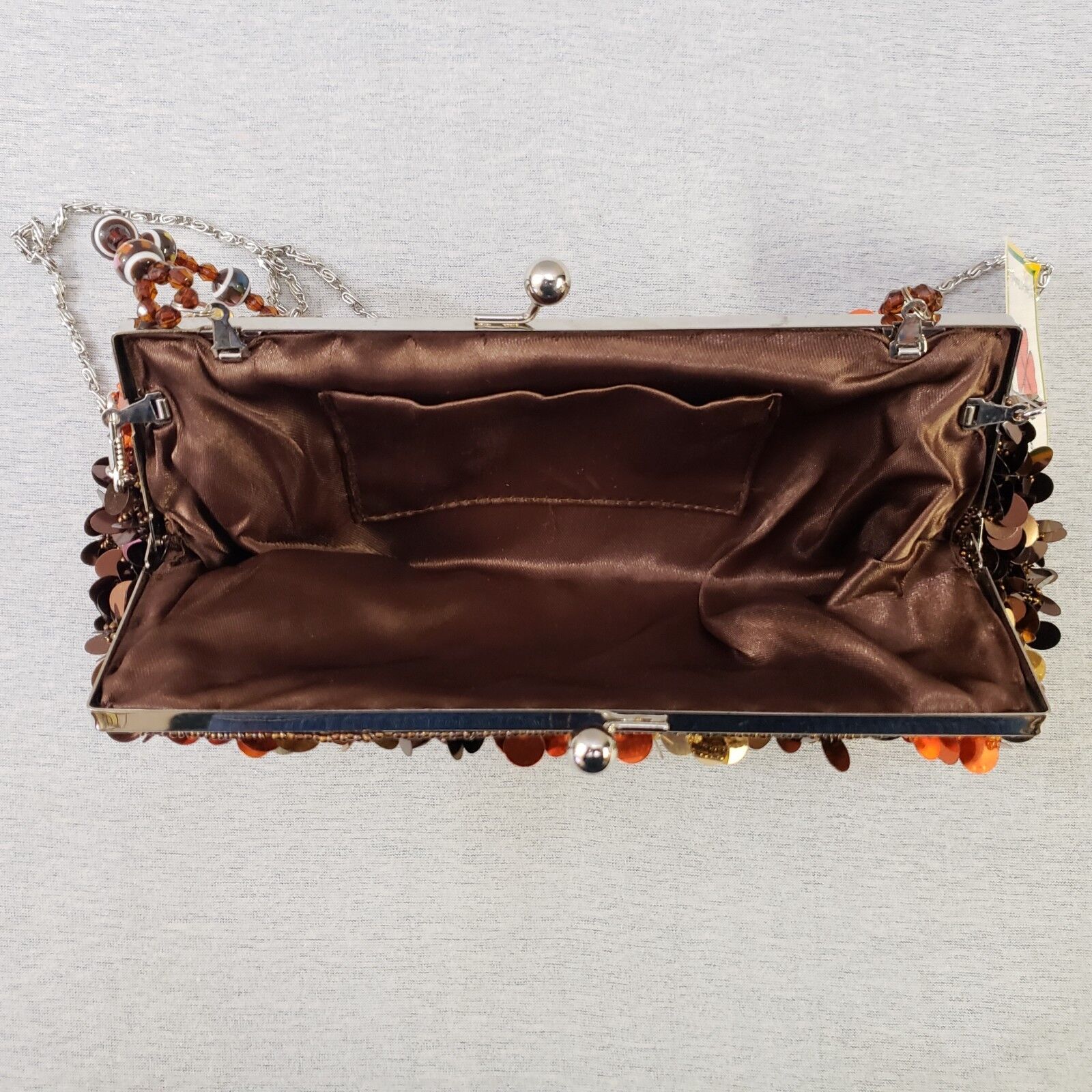 Cocos Intl Beaded Sequin Evening Clutch Purse Bronze Brown Gold Orange NWT
