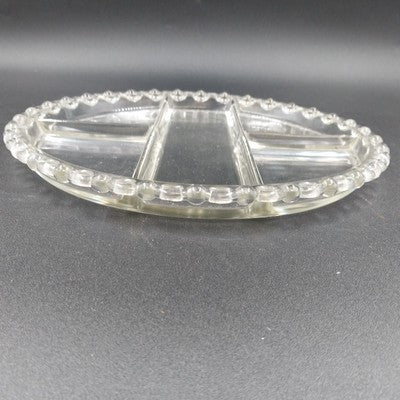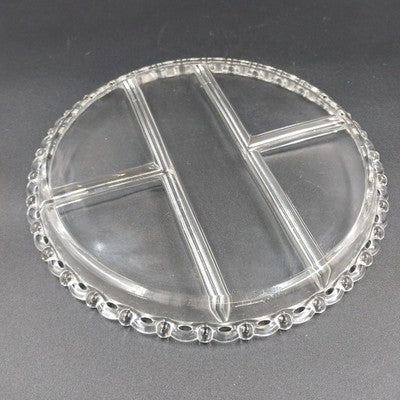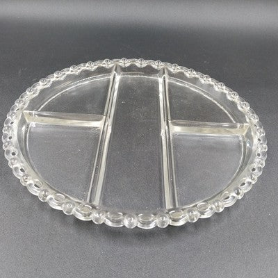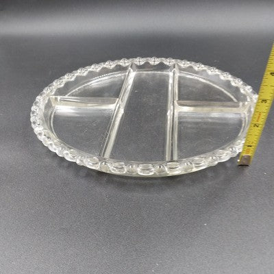 Condiment Dish Plate Divided Five Section Part Clear Glass Bubble Edge 11.25"