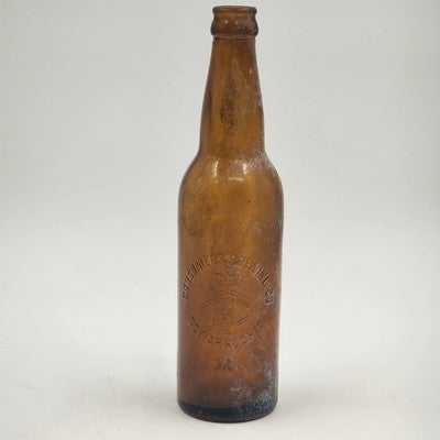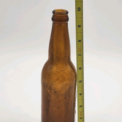 This bottle would make an excellent display item for collectors, enthusiasts of vintage brewing artifacts, or as an accent piece for rustic and industrial-themed spaces.