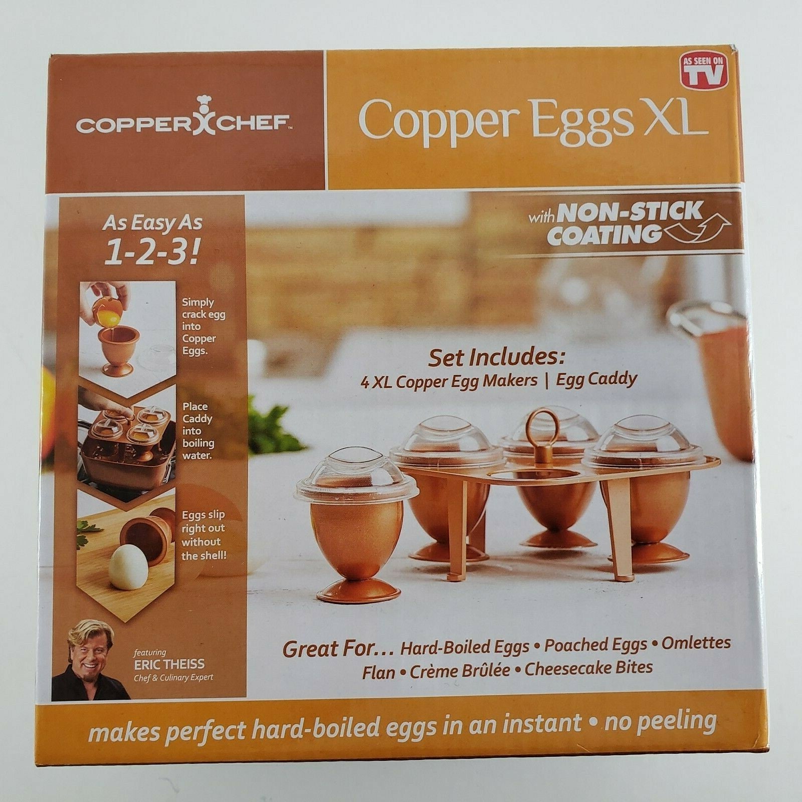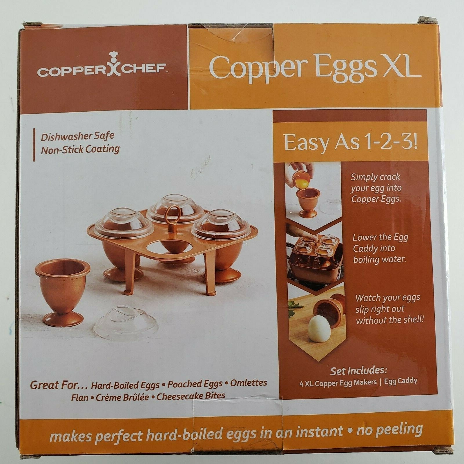 Copper Chef Copper Eggs Cooker 4 Pc Set XL Non-Stick Hard Boiled Egg Maker Caddy