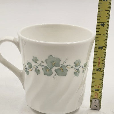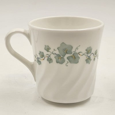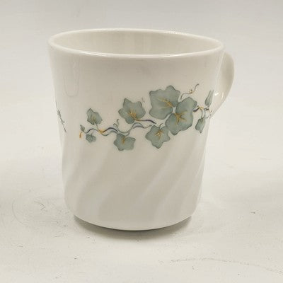This Corelle Callaway mug and saucer set showcases the charming green ivy pattern, a timeless design for your tableware collection. Perfect for enjoying your favorite hot beverages in style.