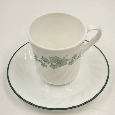Corelle Callaway Green Ivy Mug Cup Saucer Set Swirled Edge USA