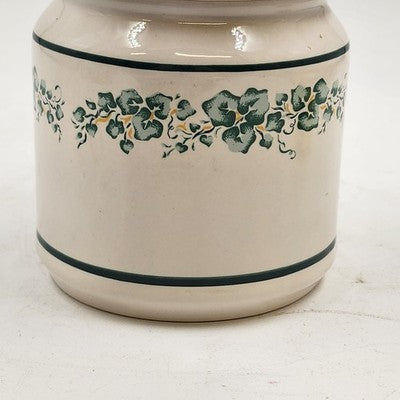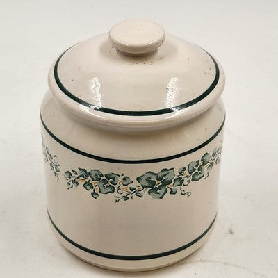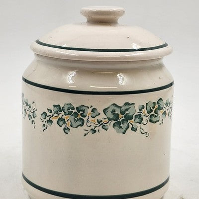 This charming Corelle Coordinates Callaway Ivy small canister features the beloved green ivy design on durable stoneware. At 5 inches tall, it's ideal for storing small kitchen items, spices, or even as a decorative accent.