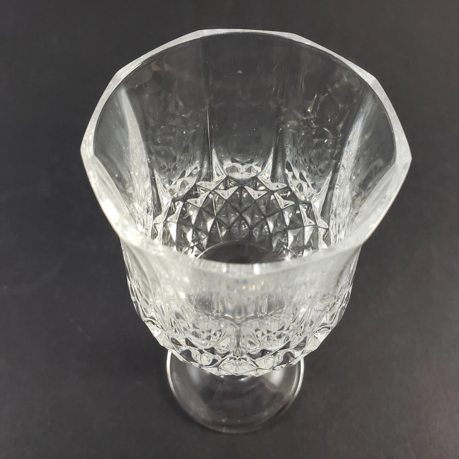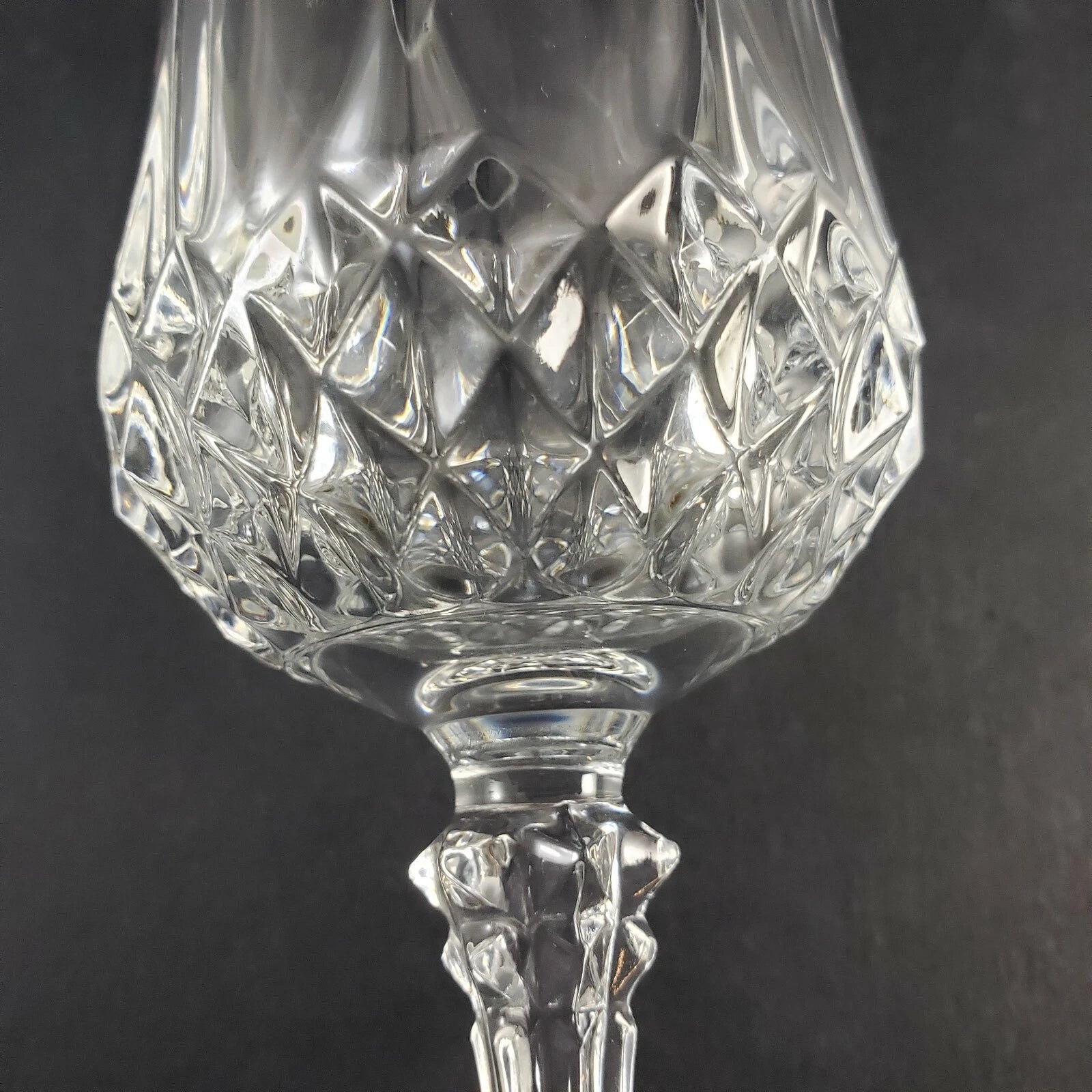 Elegant and timeless, this set of 4 Cristal D'Arques-Durand Longchamp wine glasses adds sparkle and sophistication to any table setting. Crafted in France from genuine 24% lead crystal, these glasses feature the signature Longchamp cut pattern - beautifully faceted for exceptional brilliance and clarity.