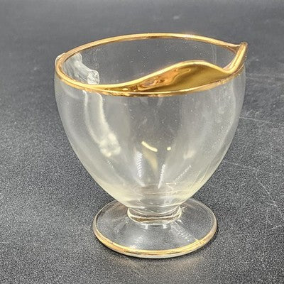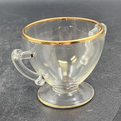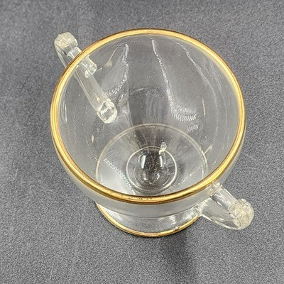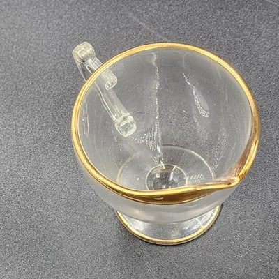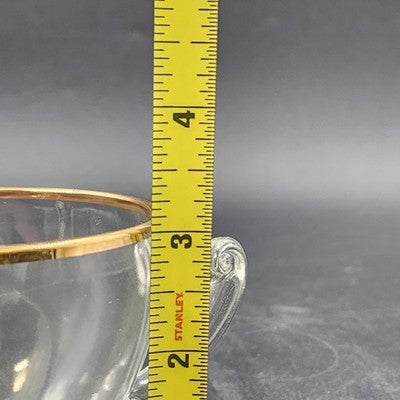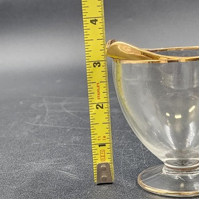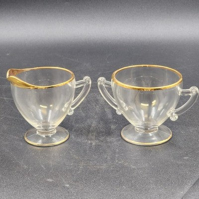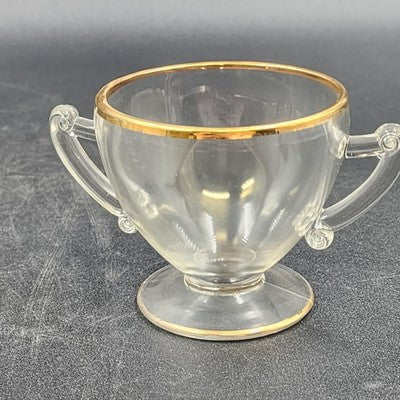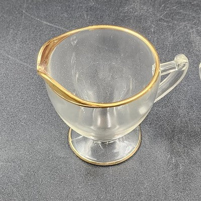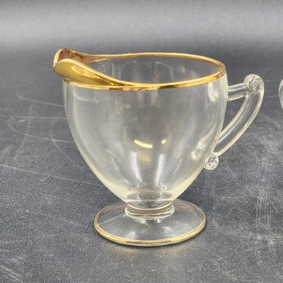 Crystal Clear Glass Sugar Bowl & Creamer 3.25" Gold Gilt Rim Scroll Handle