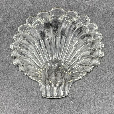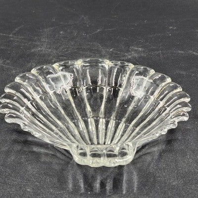 Bring coastal charm to your décor with this vintage crystal-clear pressed glass dish in a beautiful scallop sea shell shape. Perfect as a candy dish, trinket holder, or coastal-themed display piece.