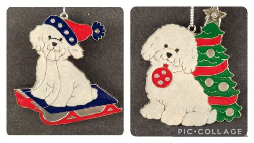Danbury Mint Bichon Frise Metal JEWELED TREE & SLED Ornaments Enamel Finish