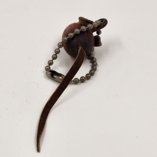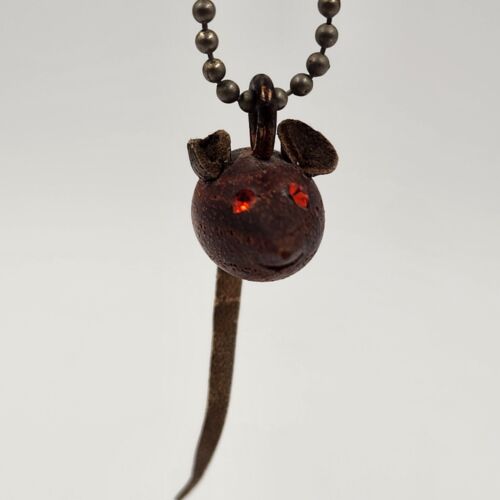 This Danish Teak Wood Mouse Keychain features a vintage design with a brown color and a miniature size of 1.25".