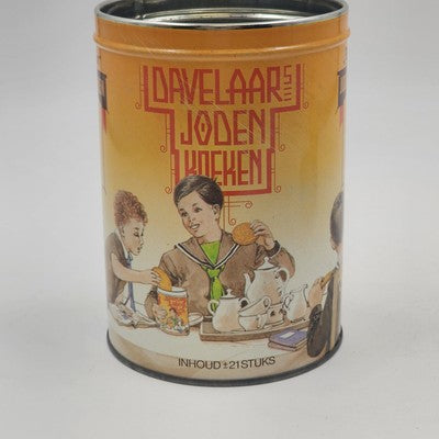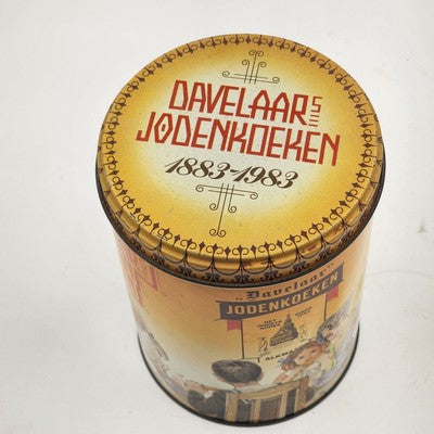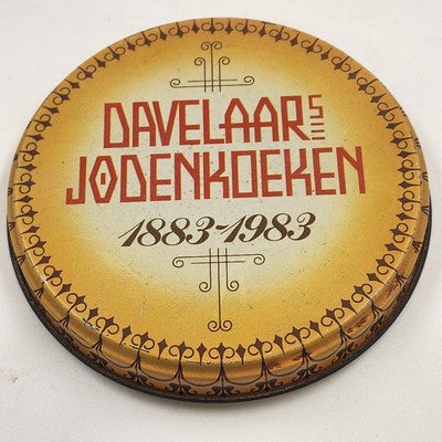 Add a touch of Dutch tradition to your collection with this Davelaar Jodenkoeken metal tin. Once home to the famous Jewish cookies, this empty container is perfect for collectors and admirers of European culinary memorabilia.